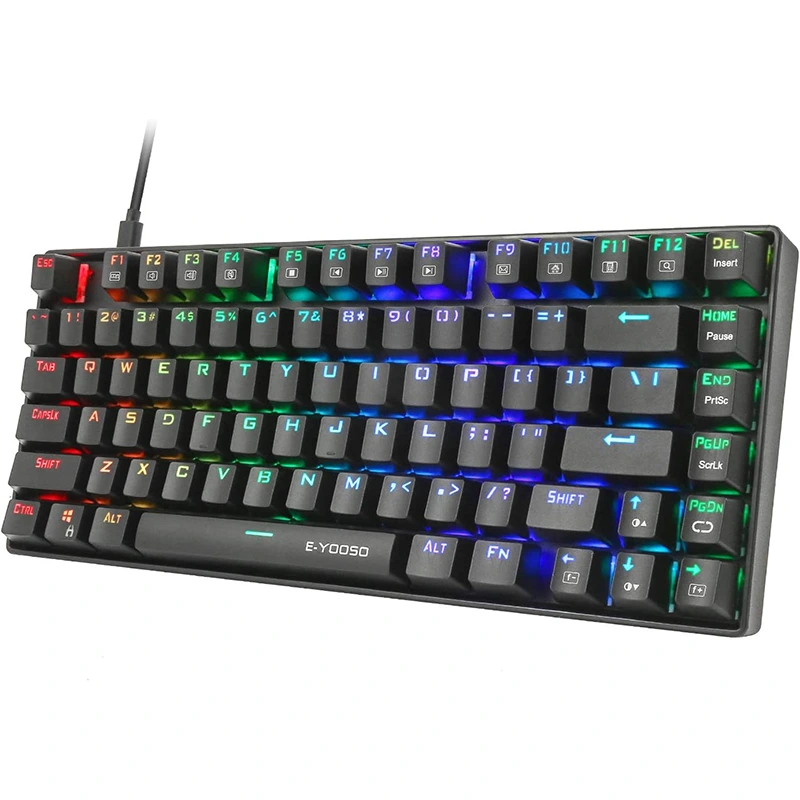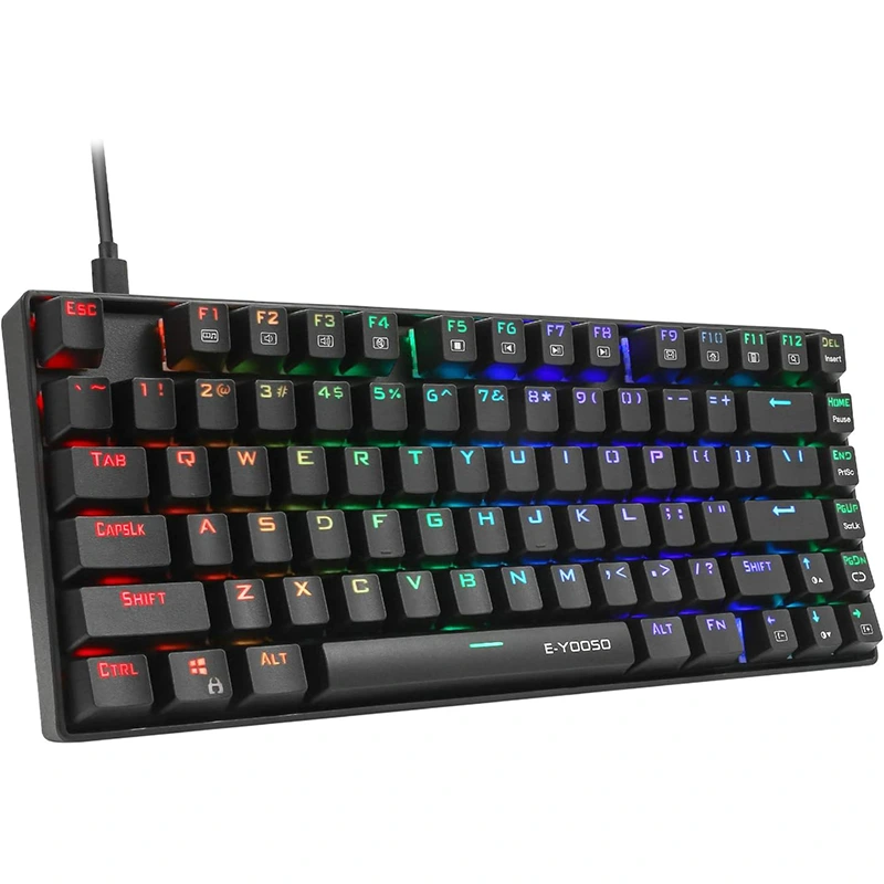 E-Yooso Z-88 PRO 60 % compact 81 touches RVB avec interrupteur bleu mécanique, clavier de jeu rétroéclairé par LED, résistant à l'eau et anti-ghosting pour les caractéristiques