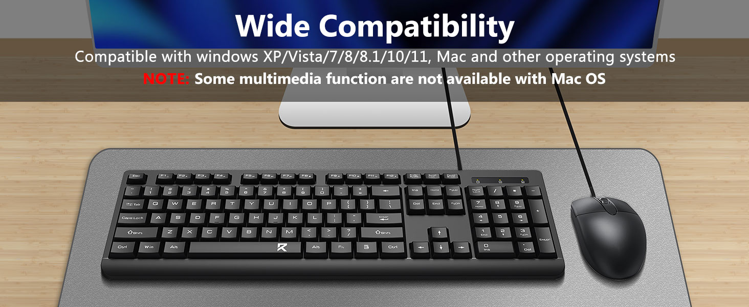 R : Le combo clavier et souris filaire noir BC7543 est compatible avec la plupart des ordinateurs de bureau et portables prenant en charge les périphériques d'entrée USB. Les systèmes d'exploitation tels que Windows, macOS et Linux reconnaissent généralement automatiquement le clavier et la souris une fois connectés.