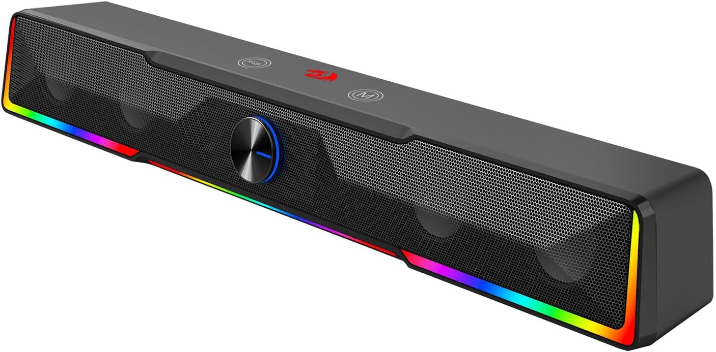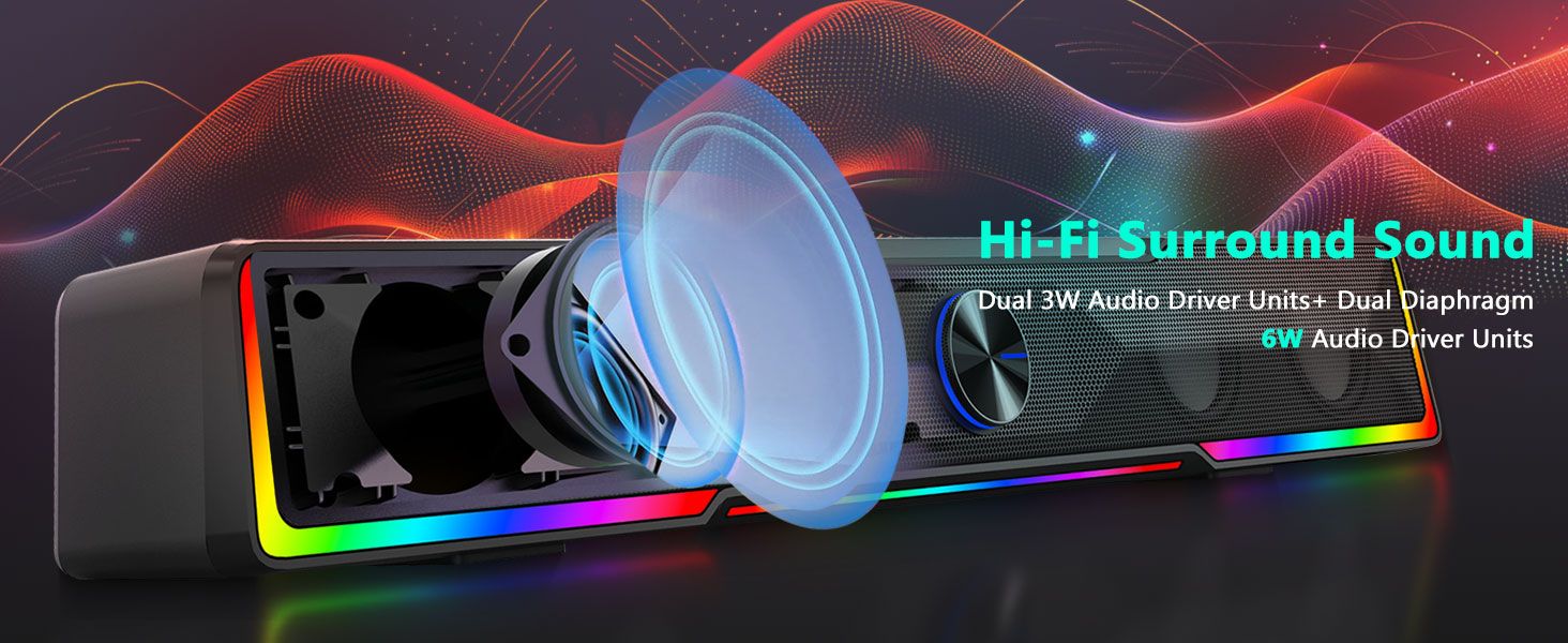 Son stéréo de haute qualité Équipé de puissants pilotes stéréo, le haut-parleur d'ordinateur avec bouton de volume et barre de son à connexion filaire Bluetooth/USB GS516 noir offre un son équilibré avec des voix claires, des médiums détaillés et une réponse des basses améliorée. Le haut-parleur est conçu pour produire un son immersif pour plusieurs types de contenu, notamment des films, des jeux, des podcasts et de la musique.