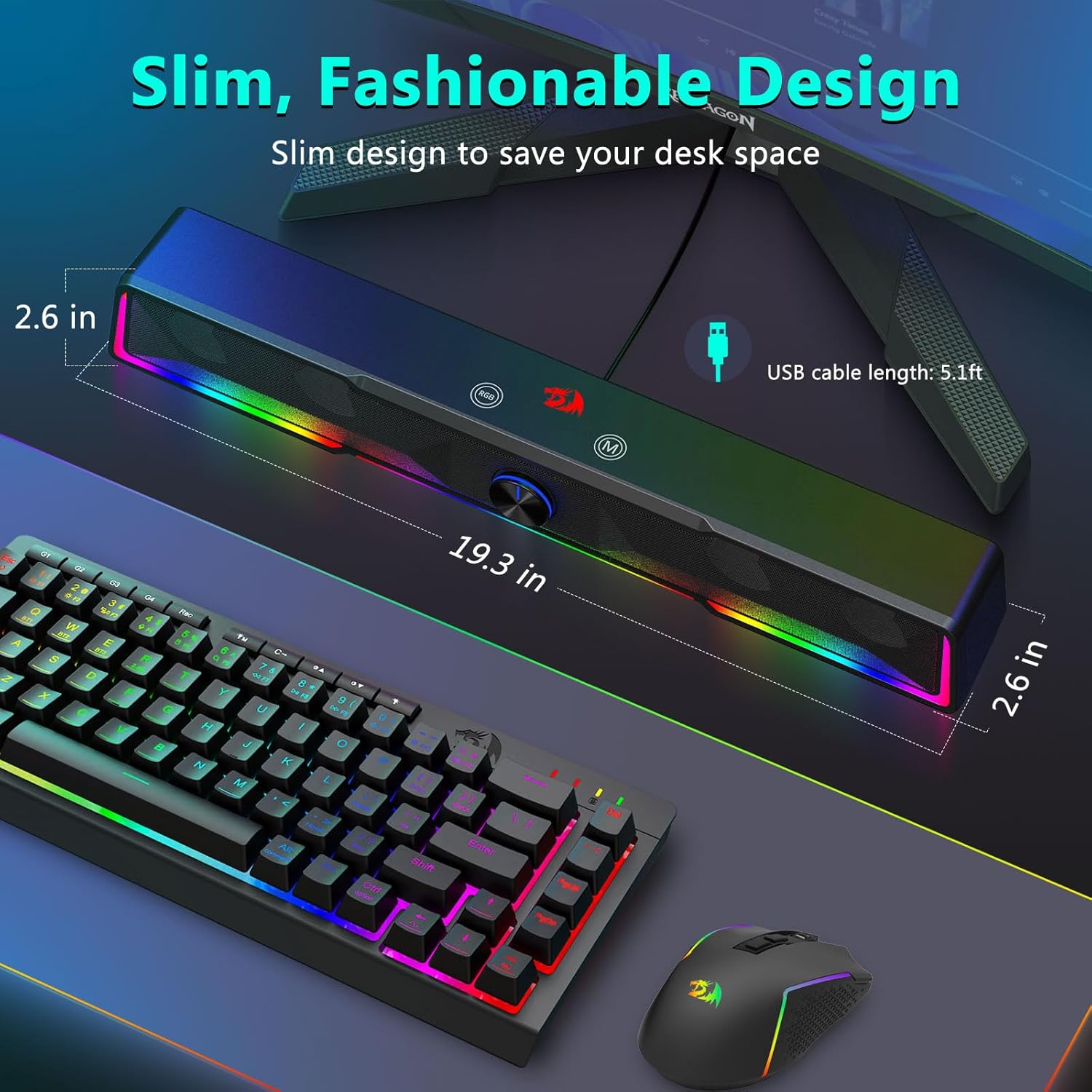 Conception compacte adaptée au bureau La disposition de la barre de son réduit l'encombrement tout en offrant une sortie audio puissante.