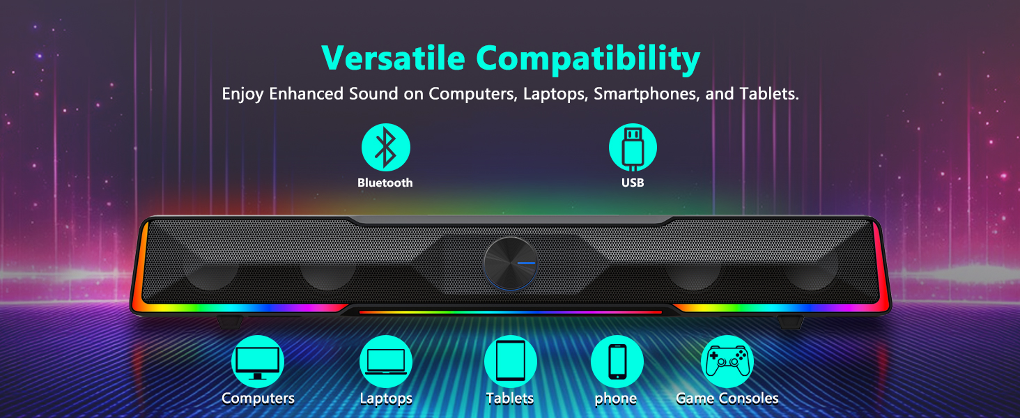Appareils compatibles Le haut-parleur d'ordinateur avec bouton de volume et barre de son à connexion filaire Bluetooth/USB GS516 noir est conçu pour fonctionner avec une grande variété d'appareils. Les appareils compatibles incluent généralement :