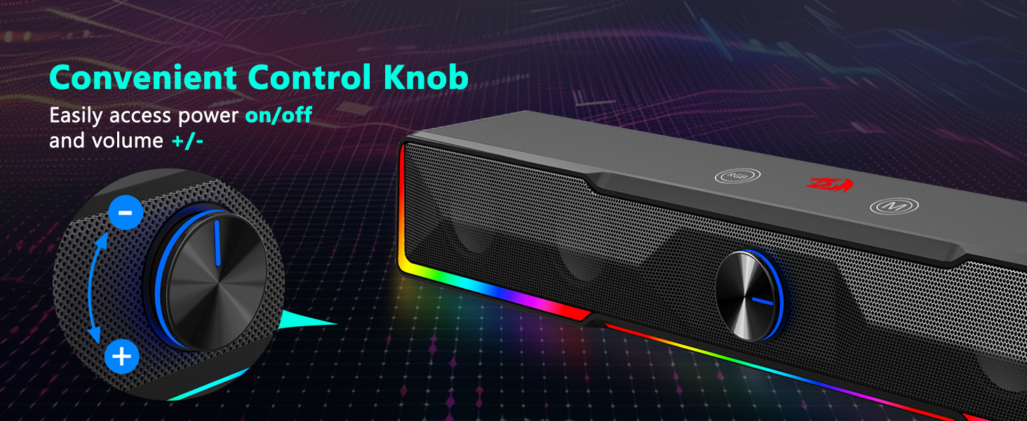 Contrôle du bouton de volume fluide Le bouton de volume intégré est l'une des caractéristiques les plus pratiques du haut-parleur d'ordinateur avec bouton de volume de la barre de son à connexion filaire Bluetooth/USB GS516 noir. Au lieu d'ajuster les niveaux sonores via les paramètres du système, les utilisateurs peuvent simplement tourner le bouton pour augmenter ou diminuer le volume instantanément. Cette commande tactile améliore la convivialité pendant les sessions de jeu, la lecture de musique et les vidéoconférences.