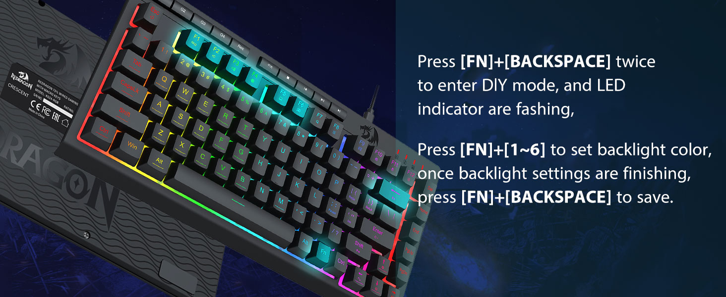 Véritable rétroéclairage RVB -Le rétroéclairage RVB entièrement dynamique permet d'innombrables possibilités d'éclairage limitées uniquement à votre imagination. Le clavier est livré avec 8 modes d'éclairage prédéfinis et 6 emplacements supplémentaires pour des modes personnalisables. La carte permet également un contrôle de la luminosité qui va de très lumineux à complètement éteint si vous n'avez pas besoin d'éclairage.