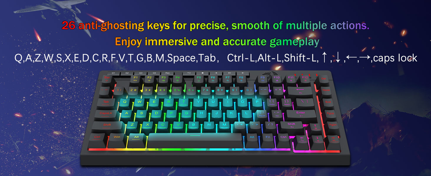 26 touches anti-fantômes et commandes multimédia dédiées -Doté de touches anti-ghosting (touches avec un trait de soulignement) qui permettent à 26 touches de fonctionner simultanément pour des réponses de jeu rapides et précises comme vous le souhaitiez. Les commandes multimédias dédiées vous permettent de lire, de mettre en pause et de sauter du contenu multimédia directement depuis le clavier afin que votre jeu soit fluide et ininterrompu.