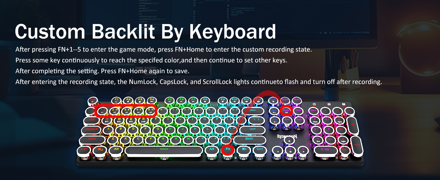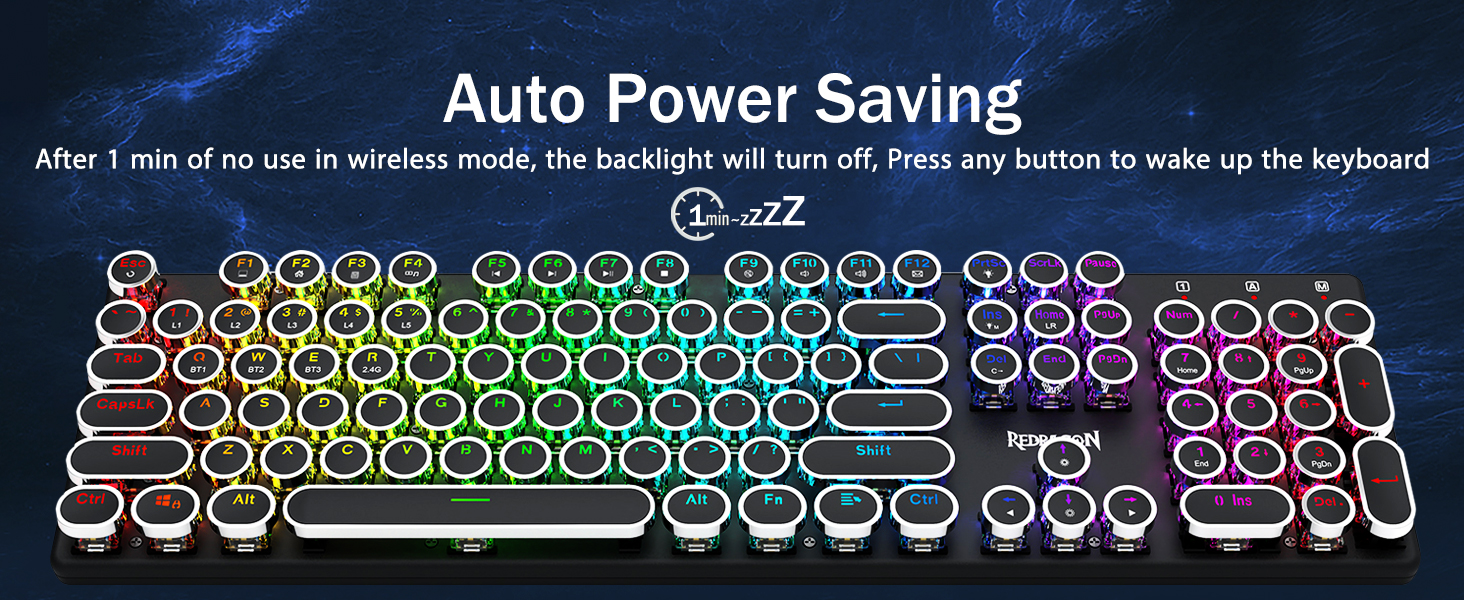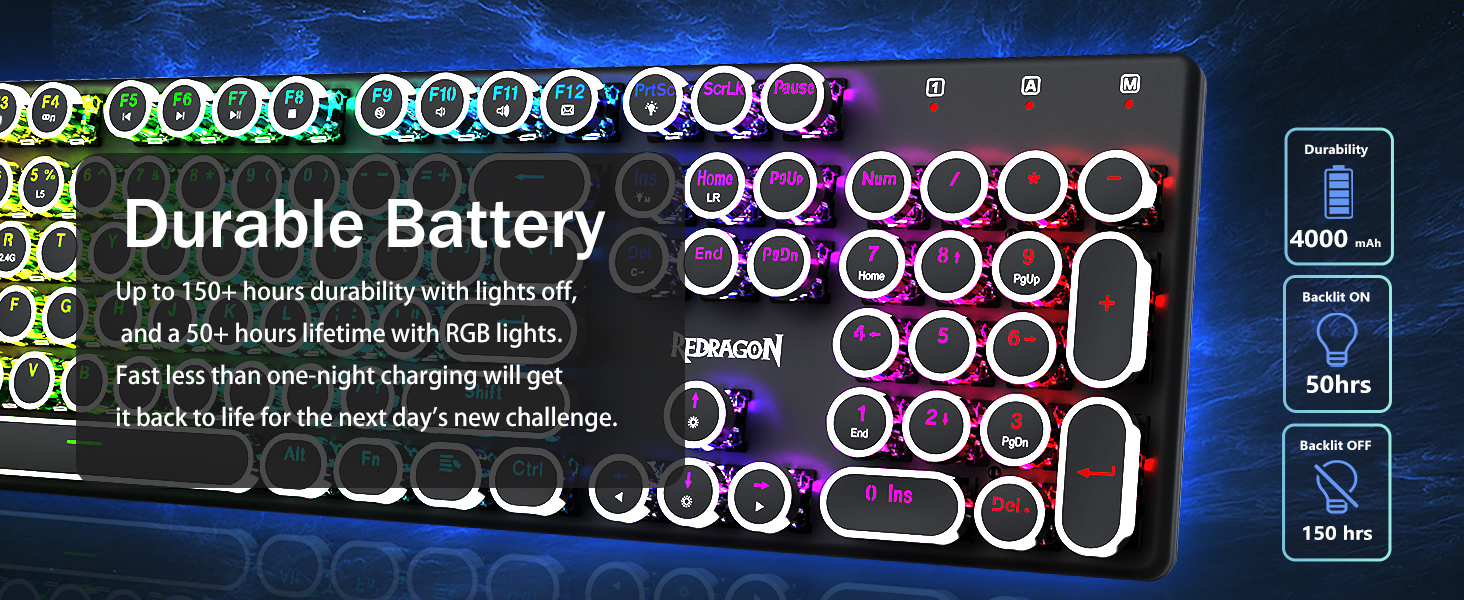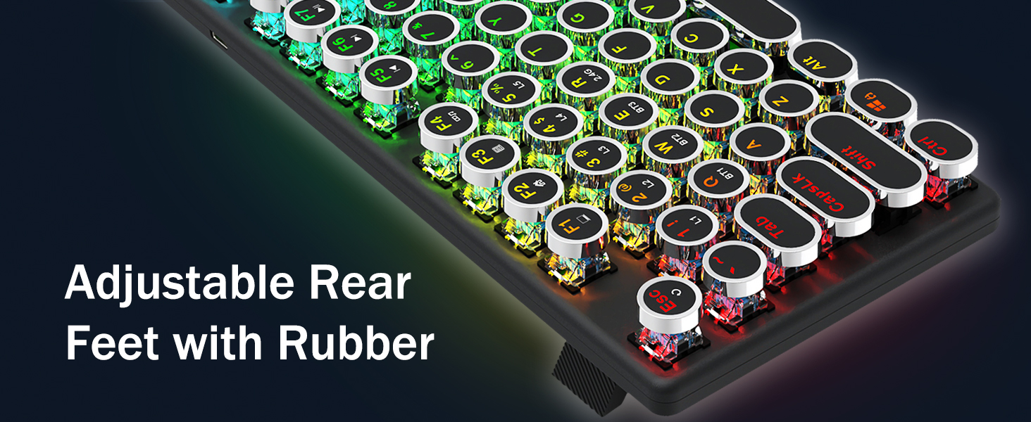 𝗥𝗲𝘁𝗿𝗼 𝗧𝘆𝗽𝗲𝘄𝗿𝗶𝘁𝗲𝗿 𝗦𝘁𝘆𝗹𝗲 𝘄𝗶𝘁𝗵 𝗠𝗲𝗰𝗵𝗮𝗻𝗶𝗰𝗮𝗹 𝗞𝗲𝘆𝘀 -Les commutateurs bleus mécaniques Redragon offrent une résistance moyenne, un son de clic audible et un retour tactile, offrent un environnement et des performances de jeu réactifs et précis. Les touches rondes du clavier steampunk vintage ressemblent à une machine à écrire classique, vous apportent une sensation de frappe confortable et un toucher de clic stable.