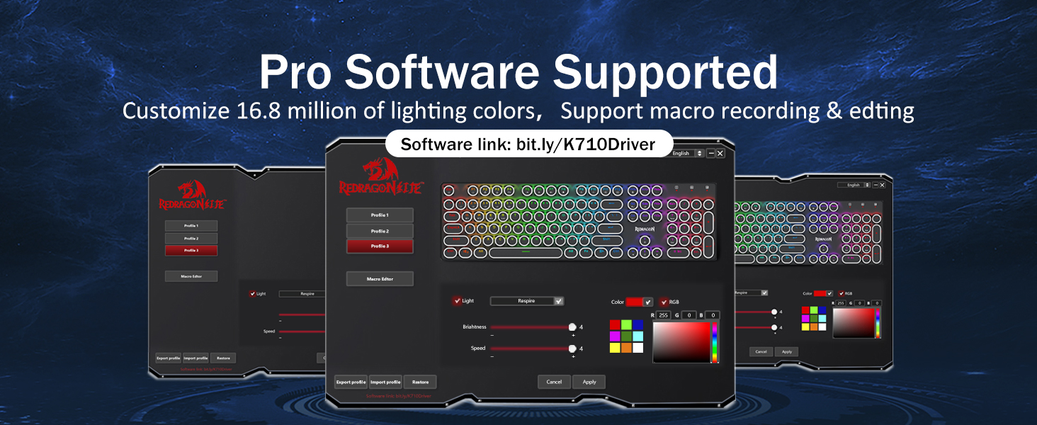 𝗣𝗿𝗼 𝗦𝗼𝗳𝘁𝘄𝗮𝗿𝗲 𝗦𝘂𝗽𝗽𝗼𝗿𝘁𝗲𝗱 -Élargissez vos options en utilisant le logiciel disponible pour concevoir vos propres nouveaux modes et effets. Macros avec différentes combinaisons de touches ou raccourcis pour un travail et des jeux plus efficaces.