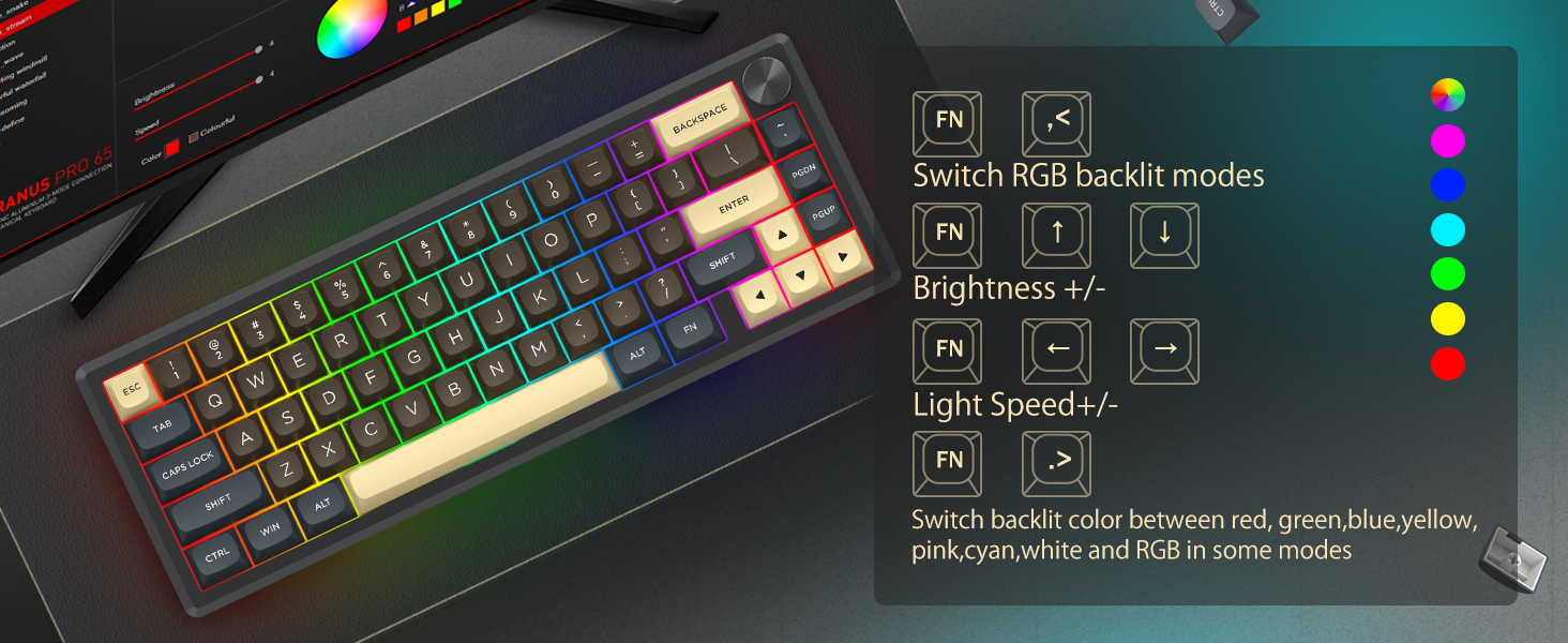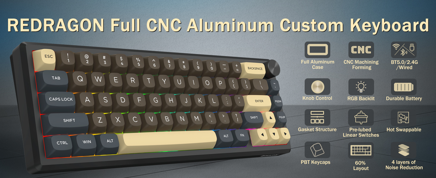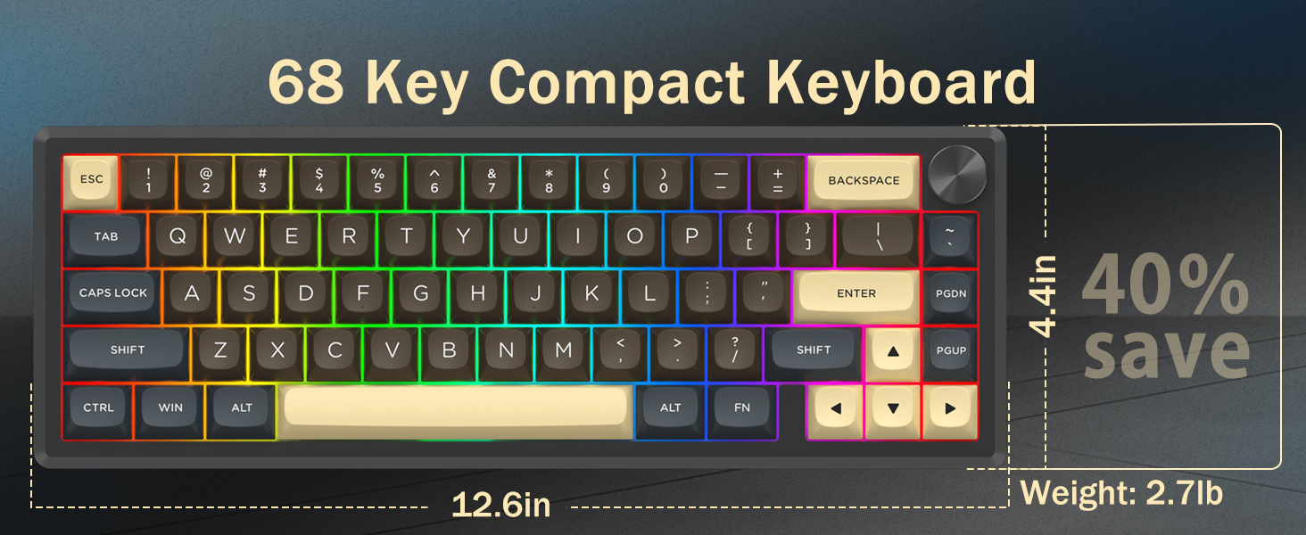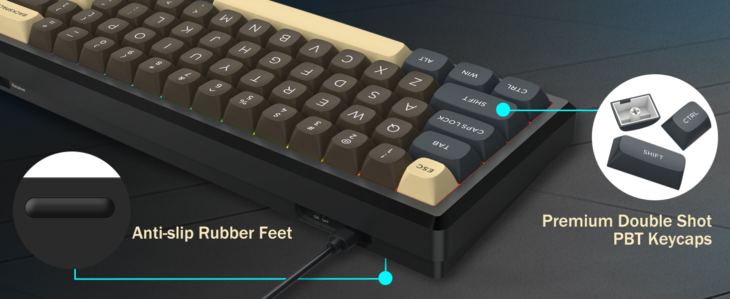 Avec sa disposition à 60 %, ce clavier supprime les touches non essentielles tout en conservant les fonctionnalités de base grâce aux combinaisons de touches. Cette conception permet de réduire l'encombrement du bureau et offre plus d'espace pour les mouvements de la souris, ce qui la rend adaptée aux environnements de jeu et de productivité.