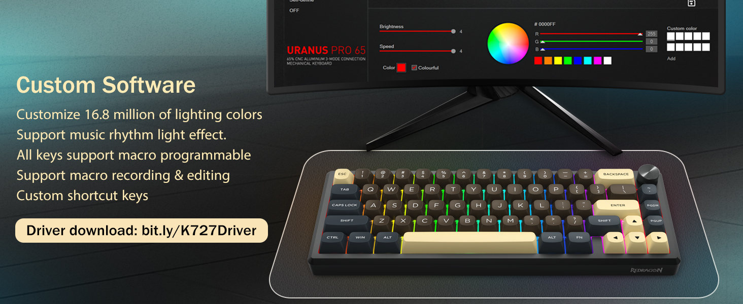 R : Le clavier est conçu pour les deux applications. Les commutateurs mécaniques fournissent un retour cohérent pour la frappe, tandis qu'une faible latence garantit des performances réactives pour les jeux.