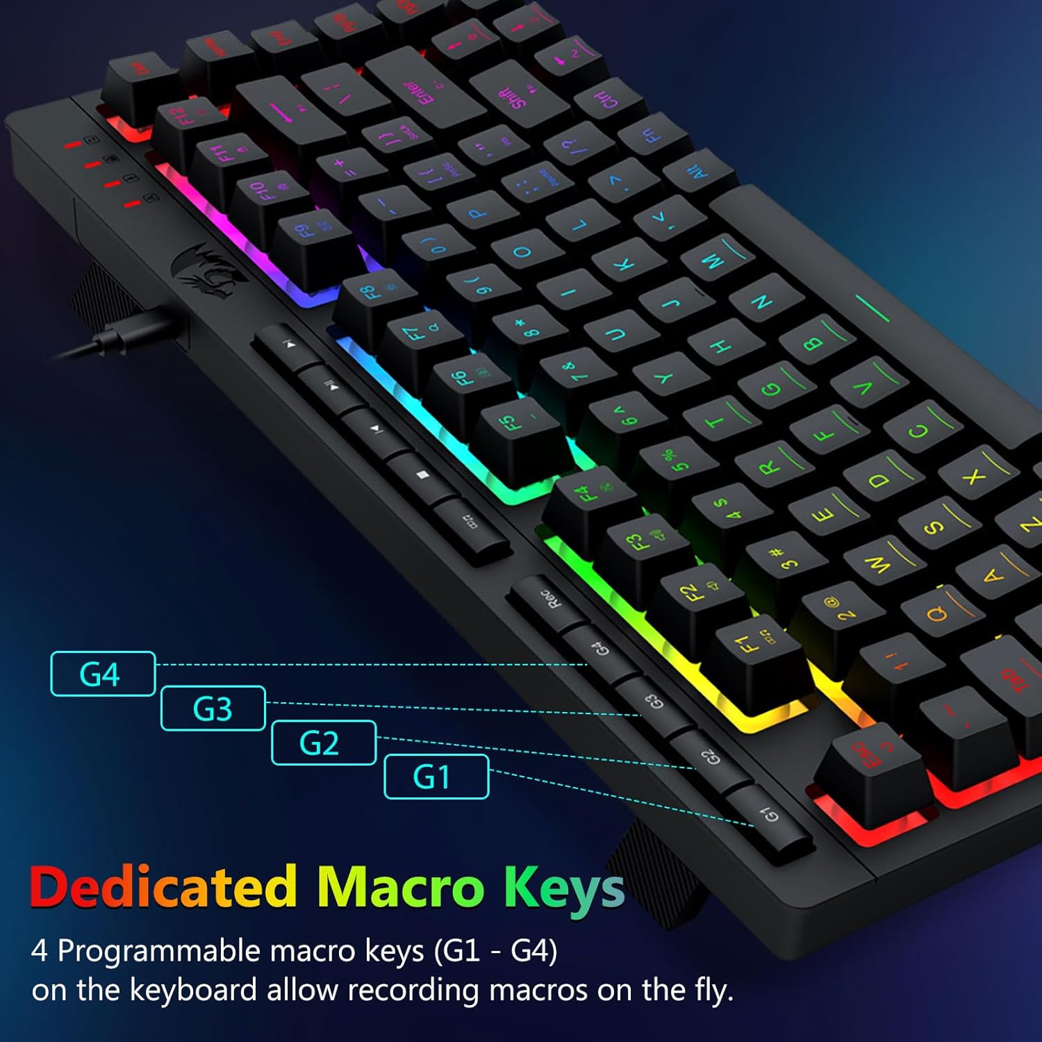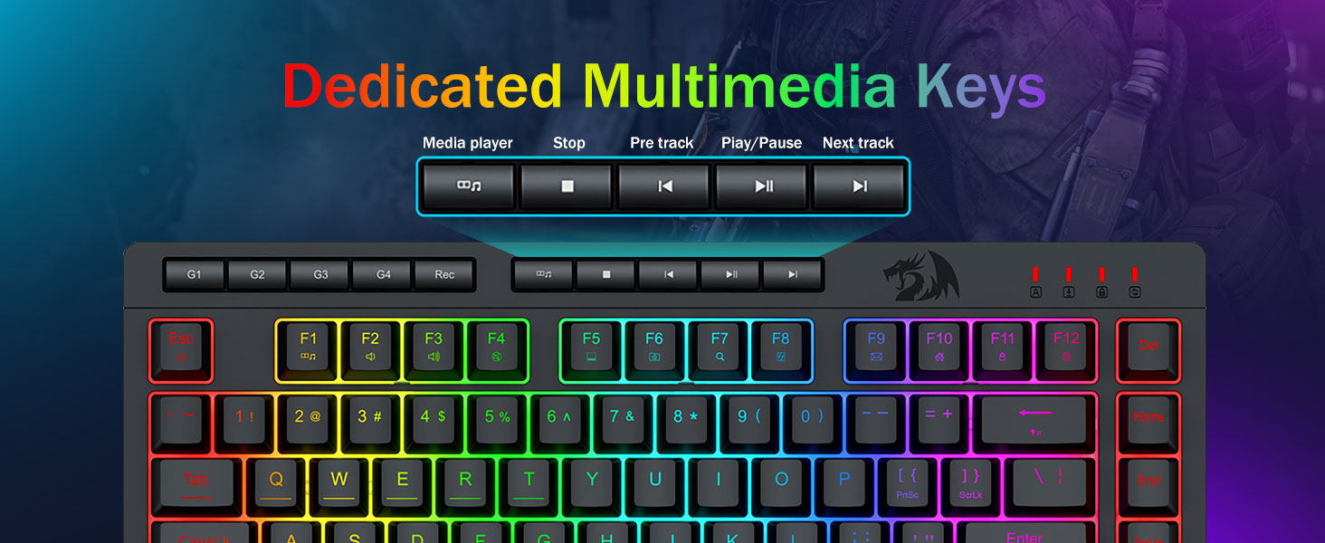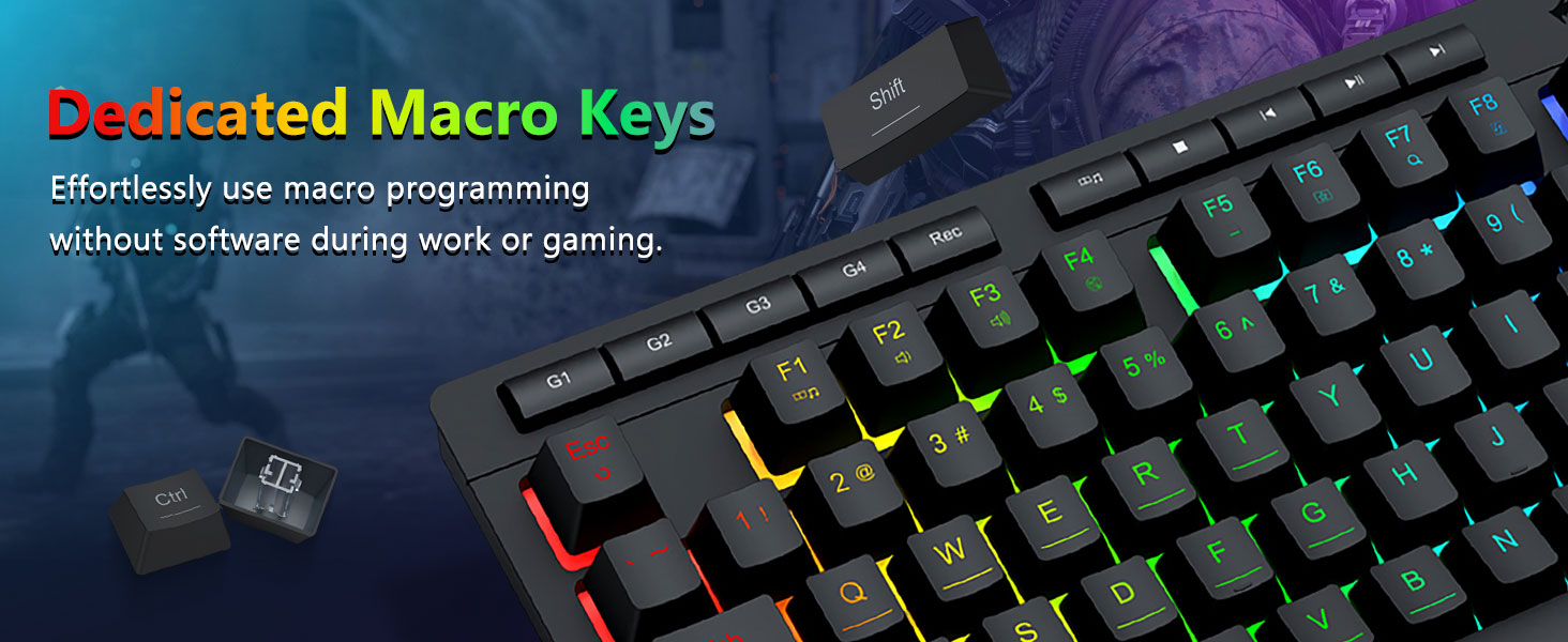 【Efficace et pratique】Ce combo clavier et souris de jeu est équipé de 4 touches macro intégrées, de 5 touches multimédia indépendantes et de 12 touches de fonction multimédia FN, simples et pratiques à utiliser. Cela améliore non seulement l'efficacité, mais rend également votre processus de jeu plus pratique et plus rapide.