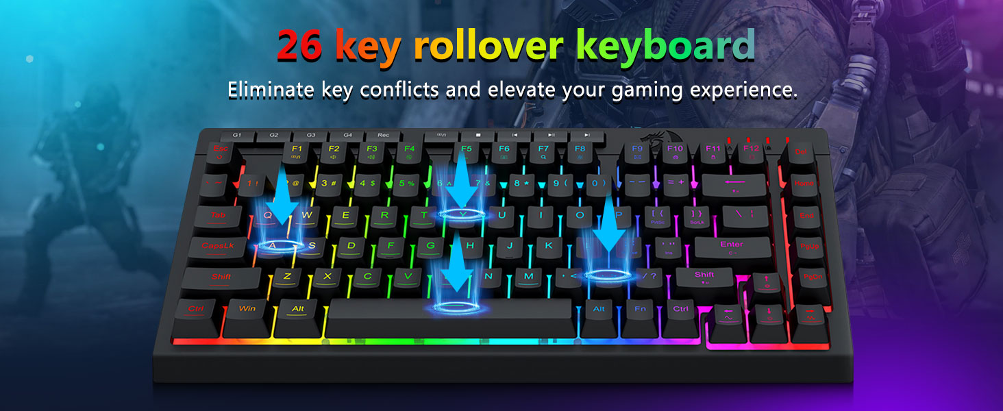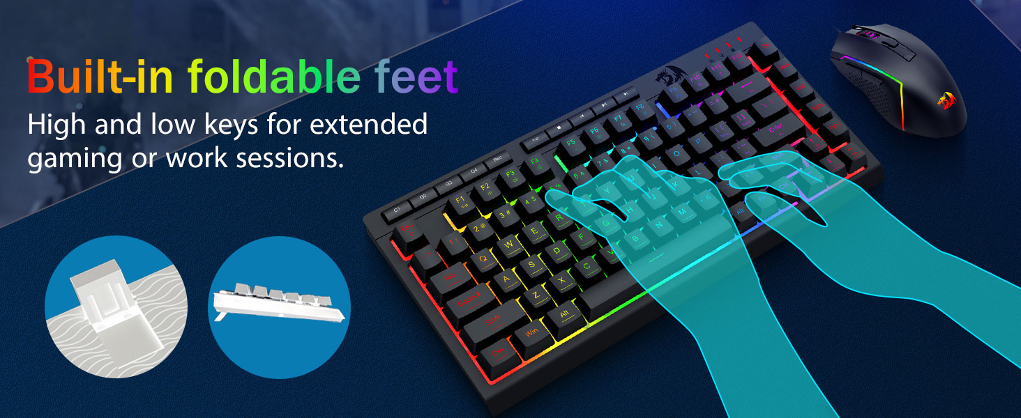 【Jeu confortable】Le support pliable du clavier, son revêtement doux pour la peau et ses touches flottantes augmentent le confort de frappe. 26 touches Anti-ghosting garantissent que chaque bouton peut être déclenché. La clé WIN peut être désactivée pour les jeux. Ce clavier et cette souris sont dédiés à offrir une expérience de jeu efficace tout en assurant un confort maximal