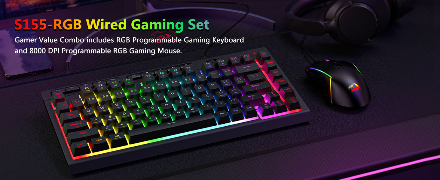 Balises actives: Ensemble clavier et souris de jeu filaire rétro-éclairé noir S155 RVB, Chine, fabricant, fournisseur, usine