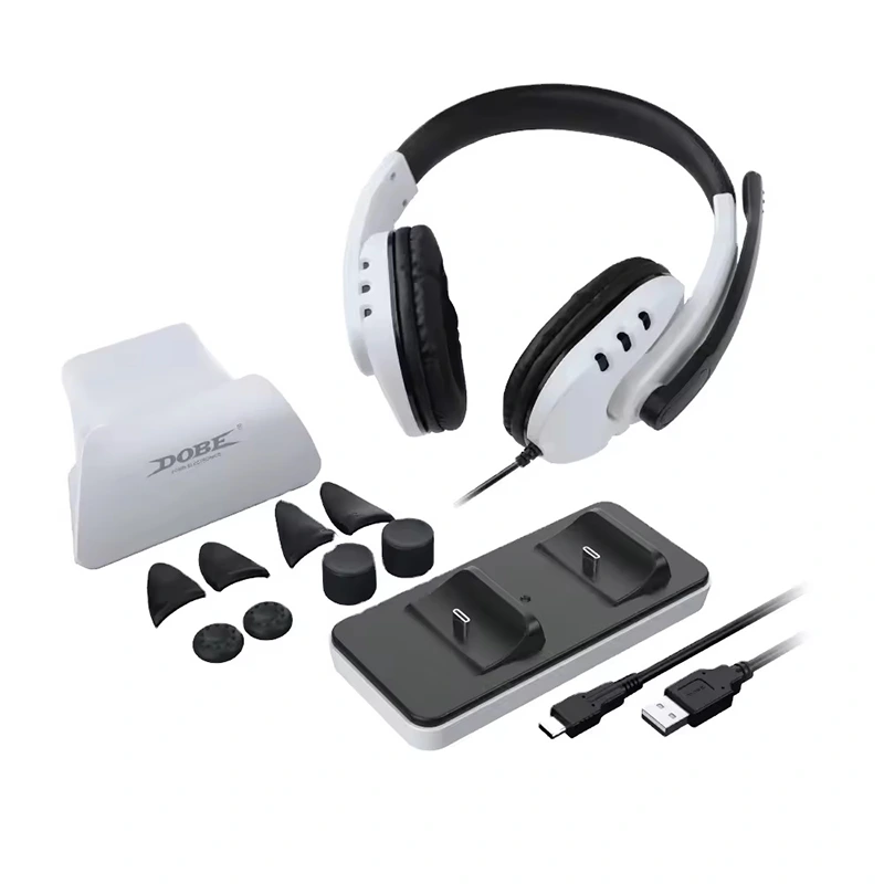 Contrôleur de jeu DOBE PS5 personnalisé, ensemble 12 en 1, chargeur de siège + écouteurs filaires + support + bouton de déclenchement + ensemble de capuchons de joystick, vente en gros