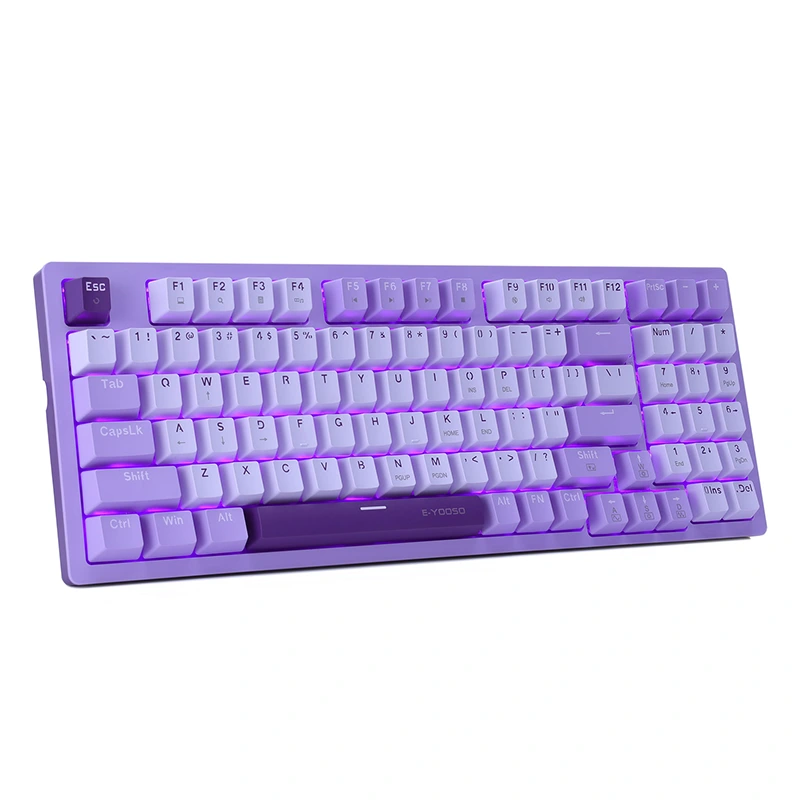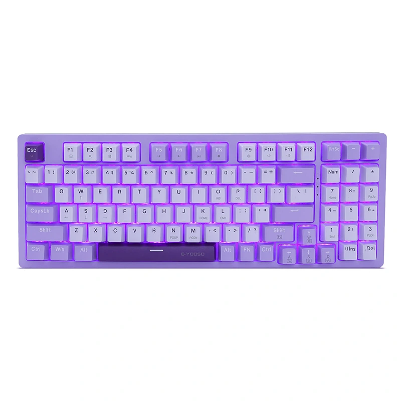 ❤ Rétroéclairage LED violet ▶ 10 modes d'éclairage prédéfinis, 5 niveaux de luminosité de rétroéclairage, vitesse de respiration. Les touches à double injection conçues avec précision ne se décolorent jamais. La lumière peut être éteinte.